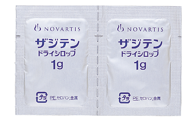 通常、小児には1日量0.06g/kg(ケトチフェンとして0.06mg/ kg)を2回、朝食後及び就寝前に分け、用時溶解して経口投与する。