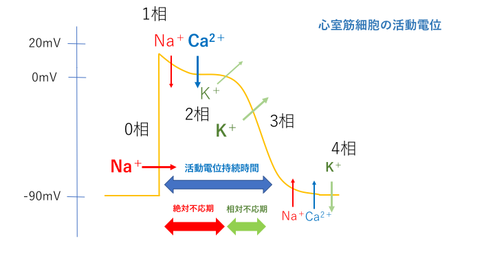Vaughan Williams分類を理解するためには心室筋細胞の活動電位について理解しなければいけません。