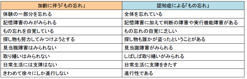 先生は、加齢による「もの忘れ」と認知症による「もの忘れ」の違いを説明できますでしょうか?