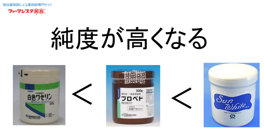 「白色ワセリンとプロペトの違い」は純度の違いであり、 白色ワセリン<プロペトの順で純度が高くなります。