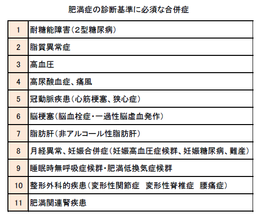 すなわち、ただ単に「肥満」状態では「肥満症」という病名がつくことはありません。