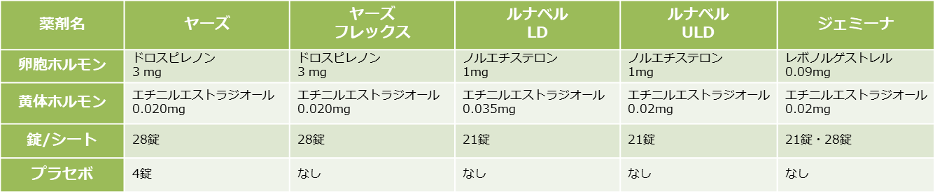 図1 低用量ピル一覧