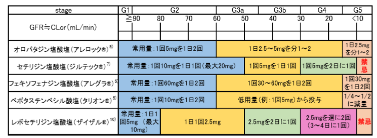 メディエーター遊離抑制薬については、クロモグリク酸ナトリウム(商品名:インタール®)は減量の必要がなく、トラニラスト(商品名:リザベン®)はデータがなく不明です5)。