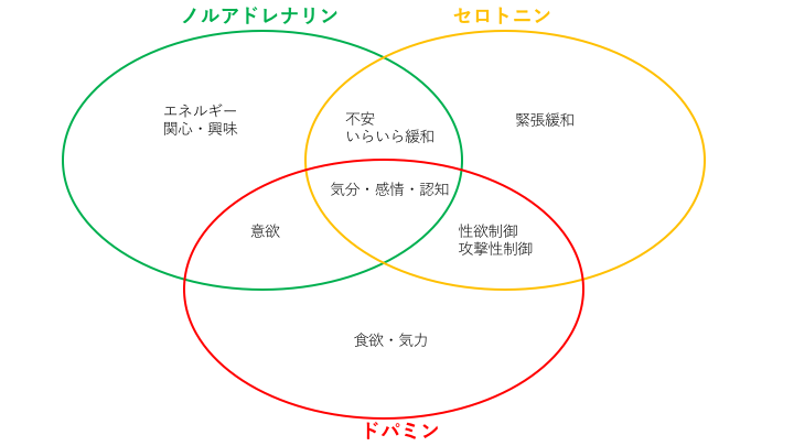 図1 ノルアドレナリン・セロトニン・ドパミン関係
