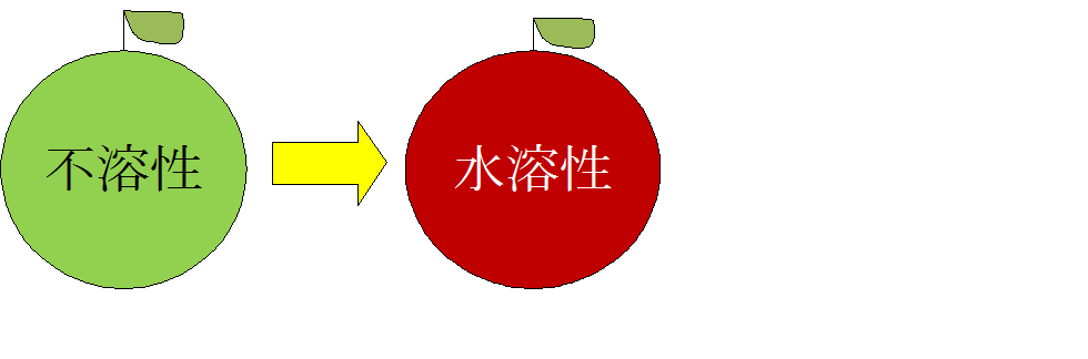 このように不溶性→水溶性に変化します。