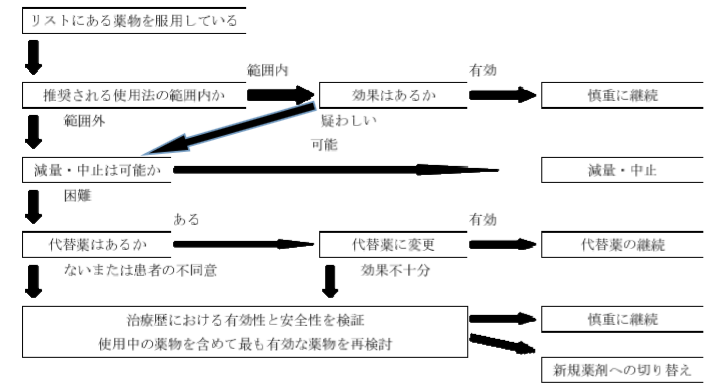下記フローチャートに従い、中止・減薬できるのか検討を始めるというだけのものです。