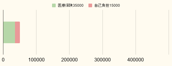 通常の医療保険のみでは500,000*0.3の150,000円が自己負担ですが、
