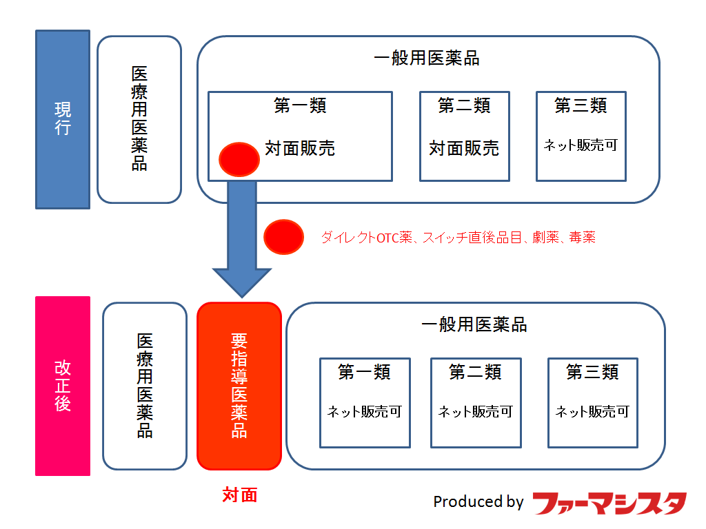 しかし、H26年5月現在の第一類医薬品の中で、ダイレクトOTC薬、スイッチ直後品目、劇薬、毒薬においては「要指導医薬品」と位置付けられインターネット販売は禁止となることが決定しました。