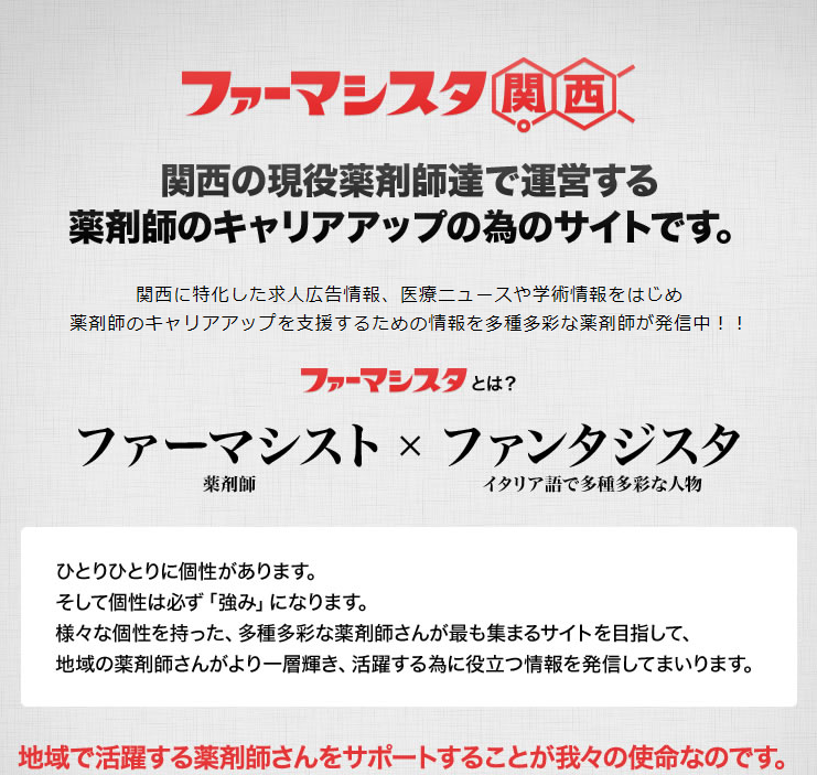 『ファーマシスタ関西』は関西の現役薬剤師で業界の活性化の為に運営しています。