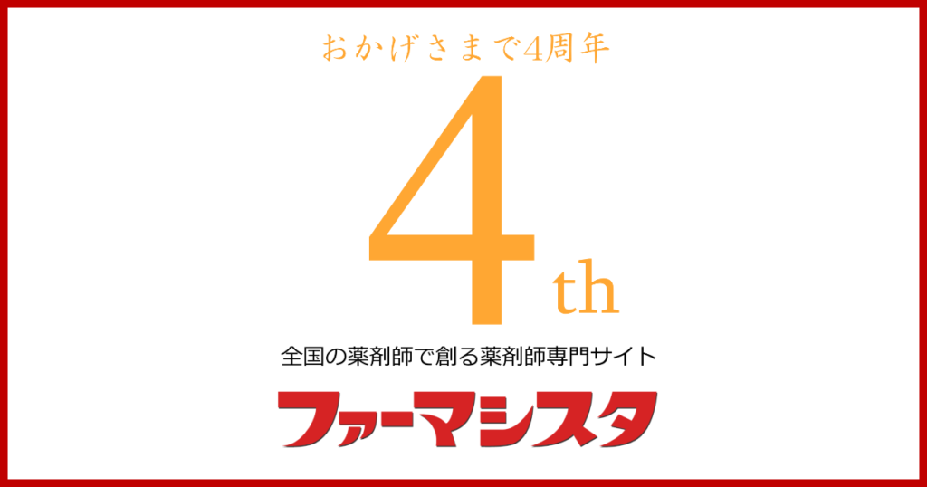 2017年8月6日、薬剤師専門サイト「ファーマシスタ」はおかげさまで4周年を迎えました。